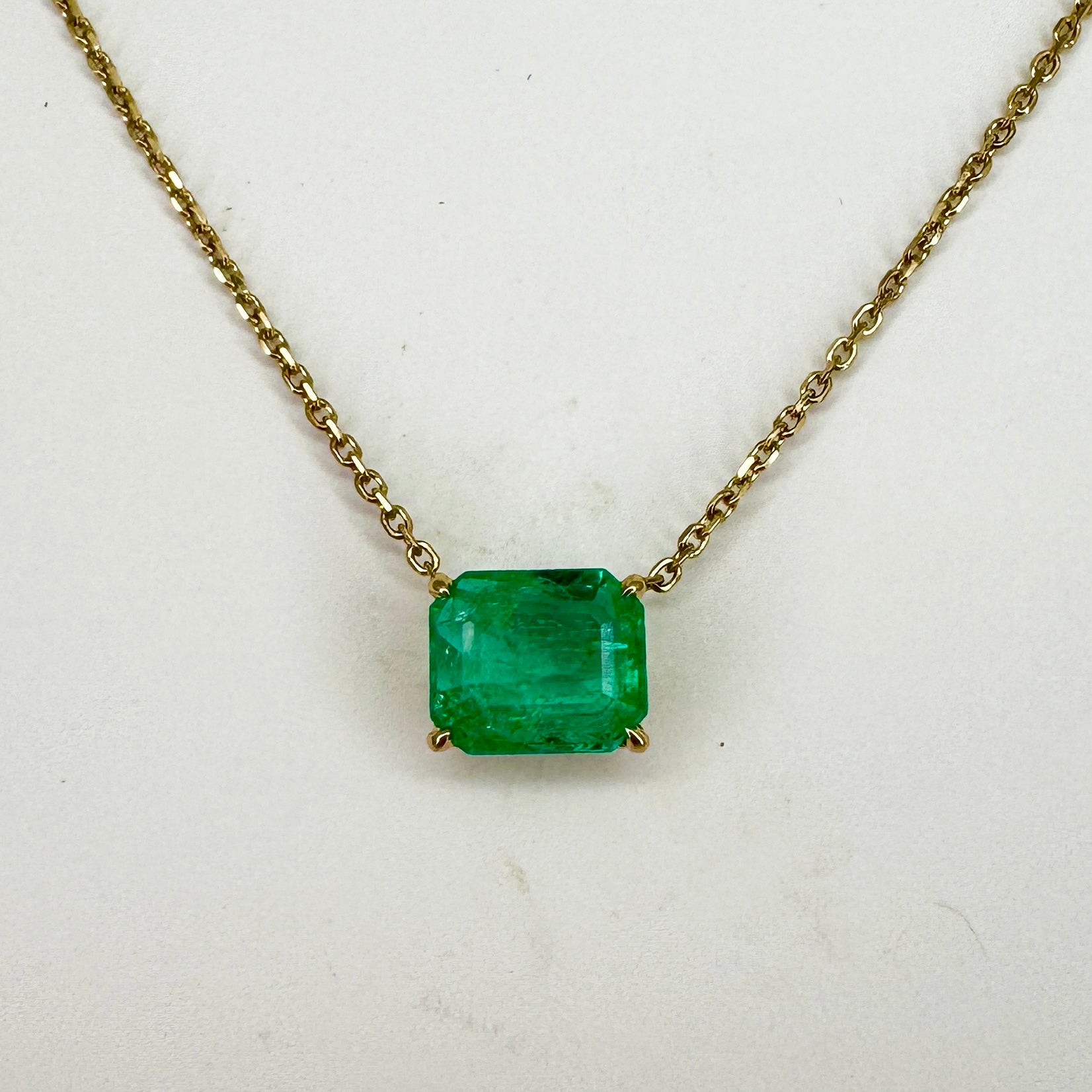 Emerald: 2.56 carats / Measurements: 9.96mm x 8.36m  / Origin: Colombia / Metal: 14KY / Length: 18"